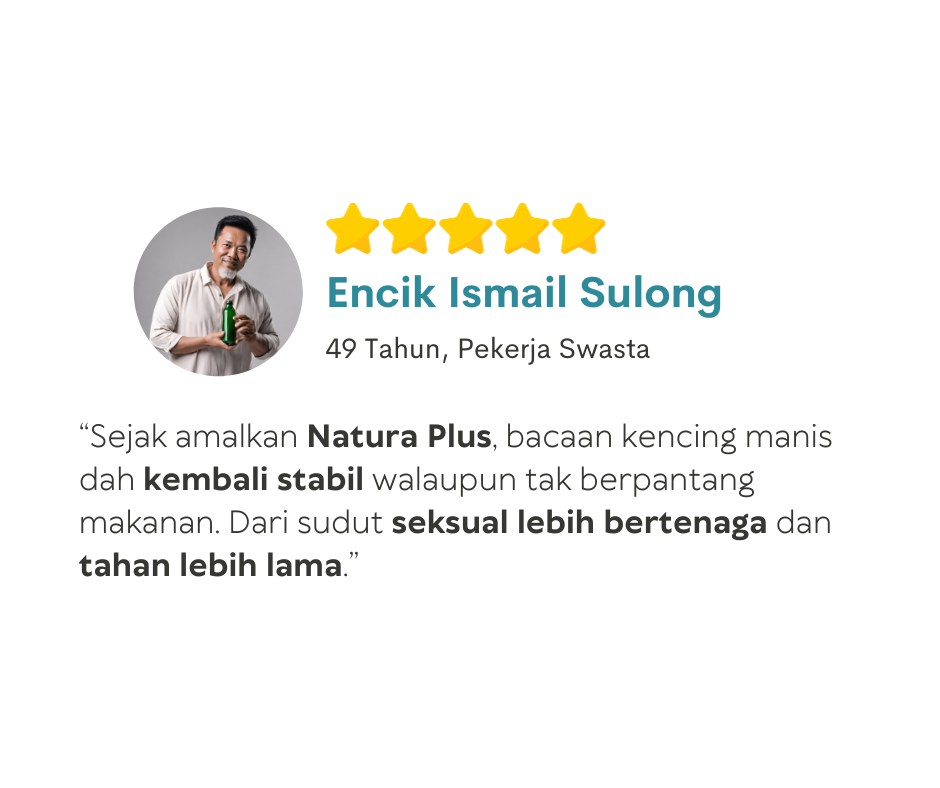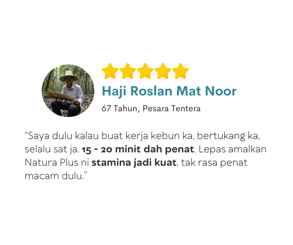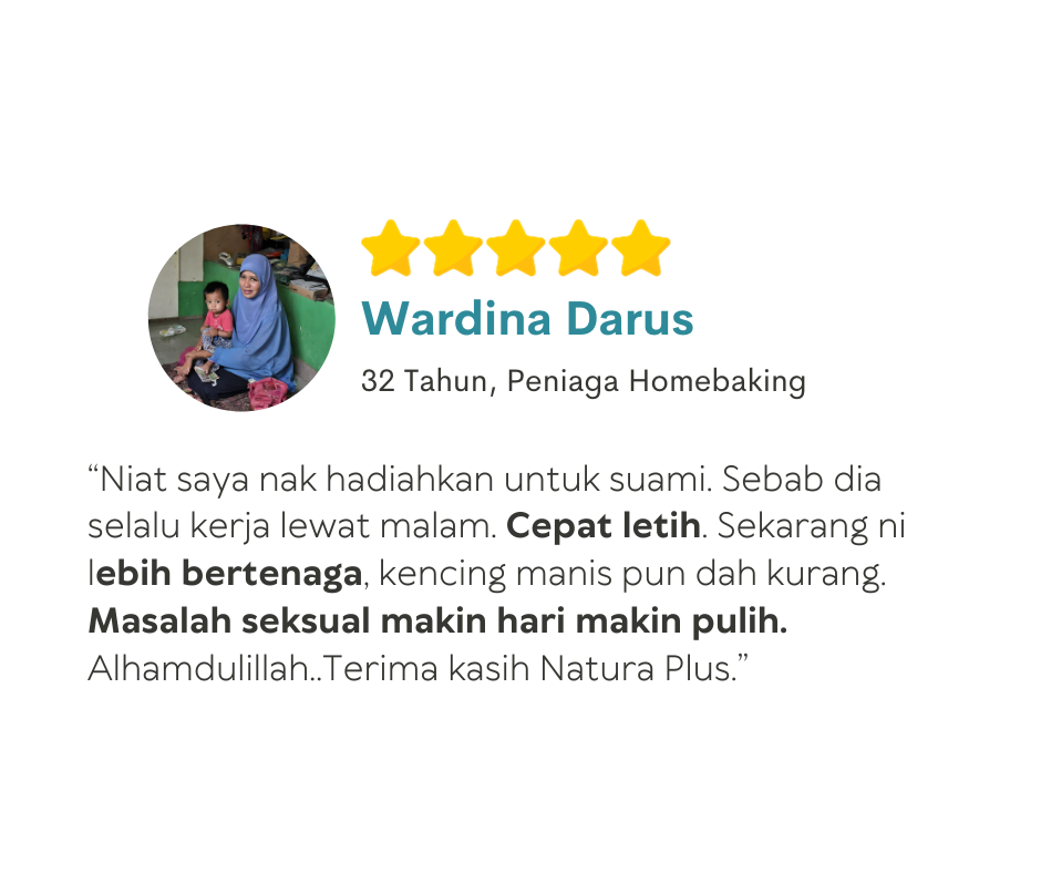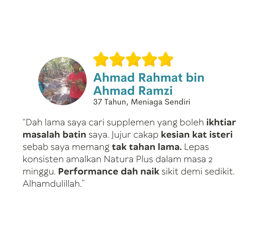 Anda dapat jaminan sekuat ini kerana kami ada bukti & pengalaman membantu ramai pengguna yang mempunyai masalah SAMA SEPERTI ANDA sebelum ini dan berjaya membuktikan NATURA PLUS  ini memang TERBUKTI BERKESAN!